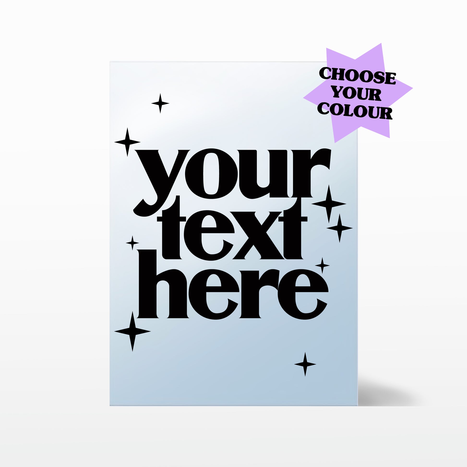 Simply choose which colour you would like for the text, and then enter your desired text in the personalisation box and we are ready to go!